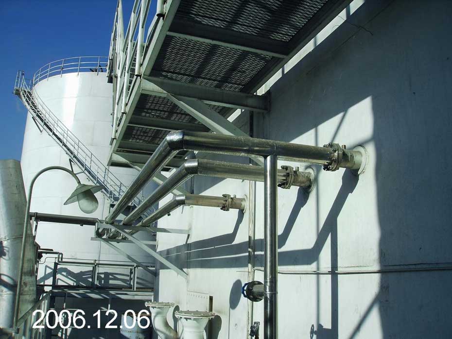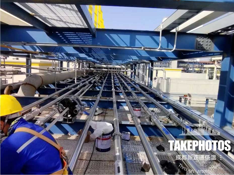 真空管在此過程中主要運用于空分冷箱和后備儲槽之間、空分冷箱和下游分離裝置之間液氧、液氮以及液氬的輸送,它由內(nèi)管、外管、波紋補償器、多層超級絕熱材料以及專用低溫吸附劑等組成,能充分滿足低溫液體長距離輸送,低溫液體冷損非常小。